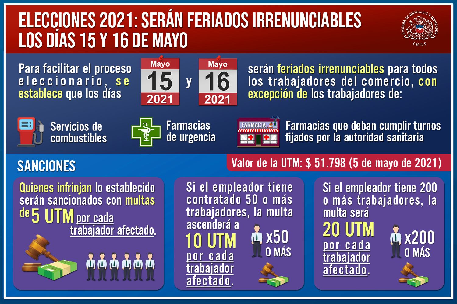 ✅APROBADO| Cámara aprobó y despachó a ley el proyecto que establece los días 15 y 16 de mayo de 2021 como feriados irrenunciables para todos los trabajadores del comercio.