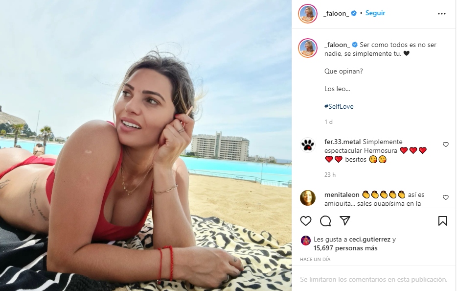 «Ser como todos es no ser nadie, sé simplemente tú» escribió Faloon para acompañar la postal, que rápidamente recibió más de 15 mil me gusta y decenas de comentarios en los que le llovieron los piropos.