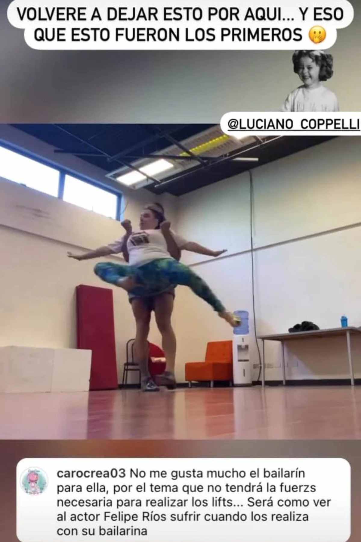 «No me gusta mucho el bailarín para ella, por el tema que no tendrá la fuerza necesaria para realizar los lifts… será como ver al actor Felipe Ríos sufrir cuando los realiza con su bailarina» escribió la mujer.