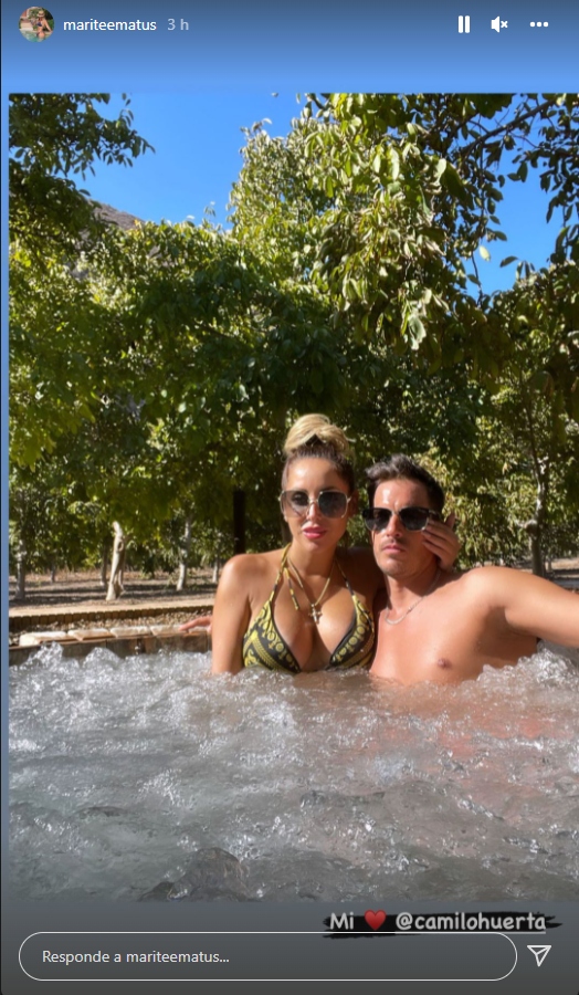 En la fotito, Marité Matus aparece junto a Camilo Huerta posando románticamente desde un jacuzzi, aprovechando con todo el tiempo de relajo. Y para acompañar la postal escribió «mi corazón» etiquetando al ex chico Yingo; mientras que este la replicó con un «te amo» con emojis de corazón y carita con corazones.