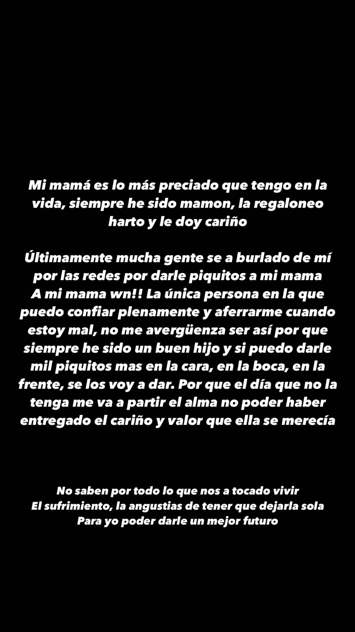 El chiquillo recurrió a sus redes sociales para descargarse, después de todos los comentarios en su contra. «Mi mamá es lo más preciado que tengo en la vida, siempre he sido mamón, la regaloneo harto y le doy cariño», comenzó Pailita sobre algo que siempre ha dejado bien en claro; lo importante que es para él su madre.