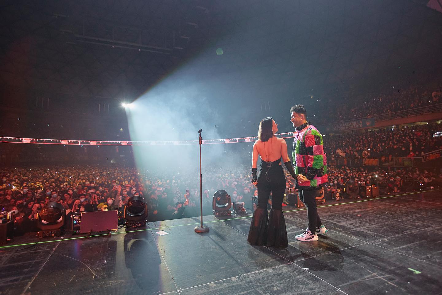 Al terminar la presentación, el cantante, no dudó en dedicarle unas palabras a Karla Melo por su aparición. «Primera vez que cantamos juntos en el escenario. Estábamos nerviosos y esperamos que nos haya salido bien. Estoy feliz de compartir escenario con mi mujer».