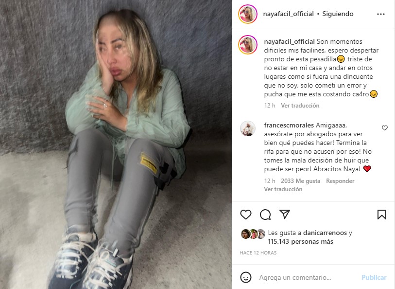 «Son momentos difíciles mis facilines, espero despertar pronto de esta pesadilla 😔 triste de no estar en mi casa y andar en otros lugares como si fuera una delincuente que no soy, solo cometí un error y pucha que me está costando caro».