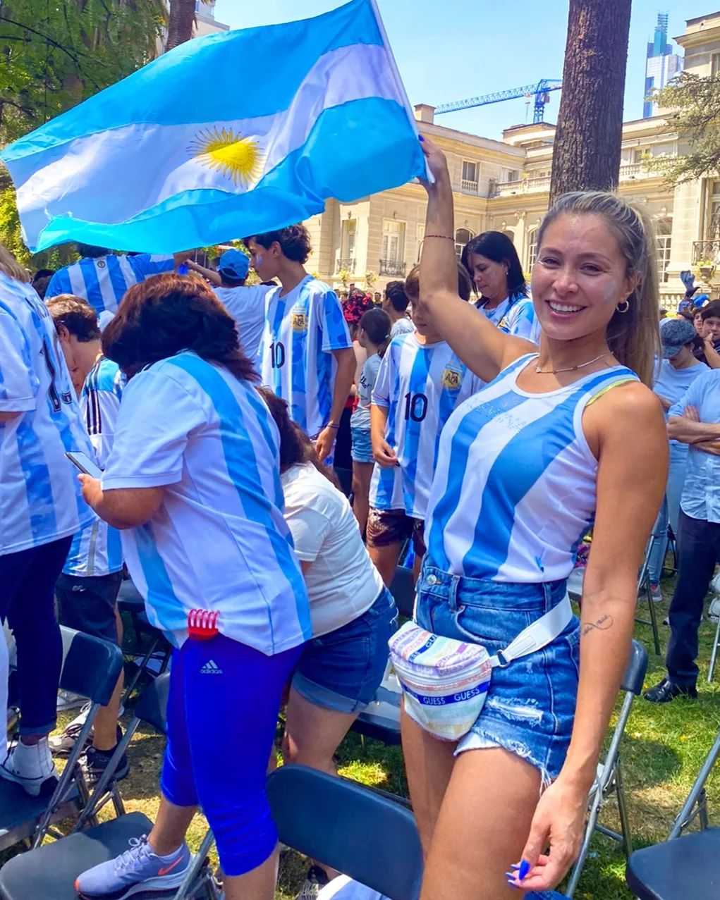 Resulta que en la embajada de Argentina, un gran grupo de residentes se congregaron para ver el partido en una pantalla instalada justo para la ocasión. Y entre ellos se encontraba la influencer, quien llegó junto a su retoño Gaspar, fruto de su relación con Claudio Valdivia, para ver el triunfo de los albicelestes.