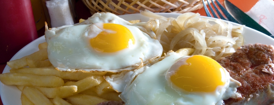 Si no lo sabía, todavía está a tiempo de saborear este contundente plato que reúne los siguientes ingredientes: dos huevos fritos, cebolla rubia, papas fritas y un bife de carne, preferentemente del corte asiento