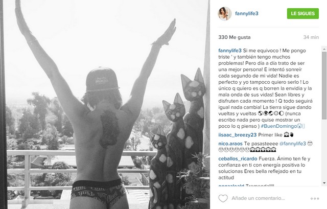 La bella ex estudiante de periodismo (se salió de la universidad para estudiar locución radial), publicó una fotito en topless, y con un mensaje muy profundo y lleno de verdades de la vida en su Instagram, donde además ha publicado otras fotos más con poca ropa.