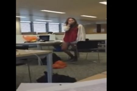 Mientras estaban todos piolas en la pega, comenzó a sonar unos gemidos bastantes calentones. La chiquilla, al darse cuenta que los sonidos venían de su compu, intenta cerrarlo rápidamente antes que sus colegas se dieran cuenta. Pero no funcionó y siguieron los sonidos hot.