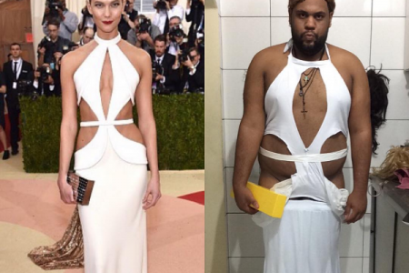 Mientras ellas se esforzaron y le pusieron empeño pa encontrar el mejor vestido e invirtieron millones de dólares pa relucir, él imitó sus vestidos pero a lo barateli.