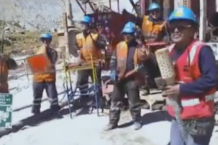 Los cabros tomaron todas sus herramientas de trabajos y las transformaron en instrumentos musicales pa grabar un video en el que imitan a Ráfaga, cantando la canción «Una Cerveza».