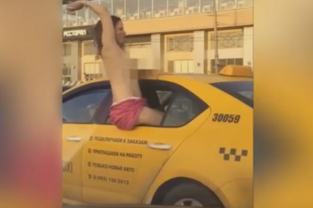 Para su sorpresa, la chica golosa, al darse cuenta que la grababan, decidió asomarse por la ventana del taxi, mostrándose semi desnuda y saludando a la gente que iba pasando.