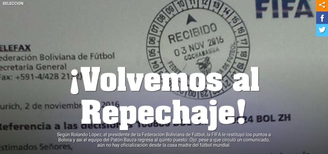Después, todo se derrumbó, ya que FIFA salió a ratificar que esa información era falsa y que no se devolverían los puntos como decían.