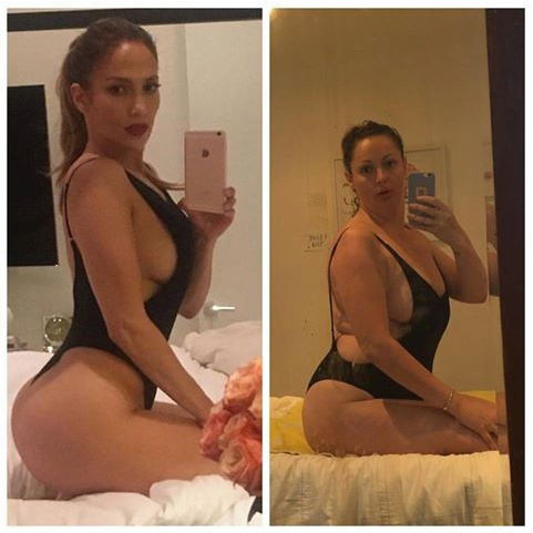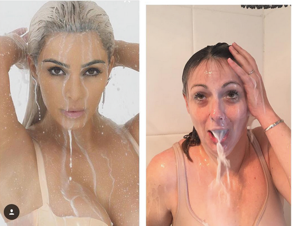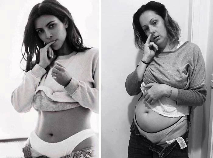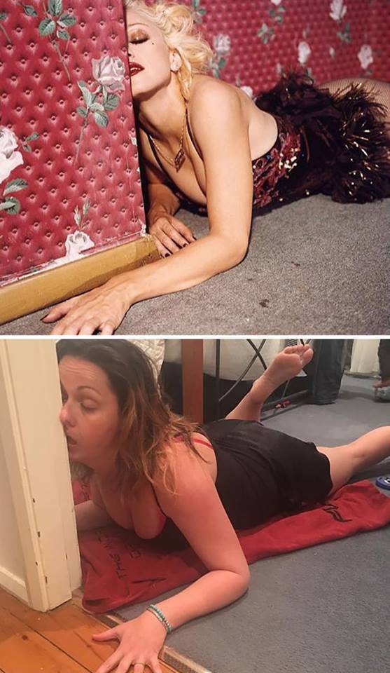 La chiquilla imita las poses más sexys de famosas, pero con nada de sensualidad, para luego publicarla junto a la original.