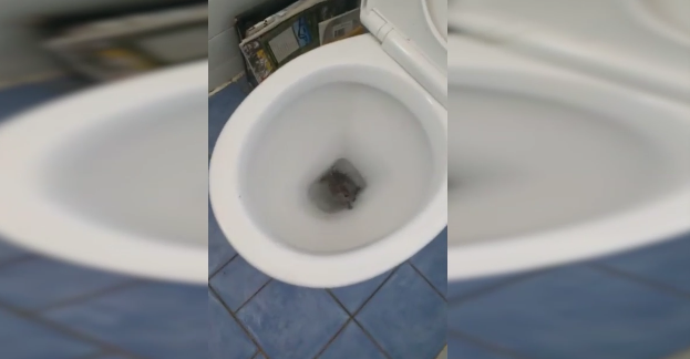 Como el roedor era un sobreviviente, hizo de todo pa salir de la taza del baño de un salto. Cachen: