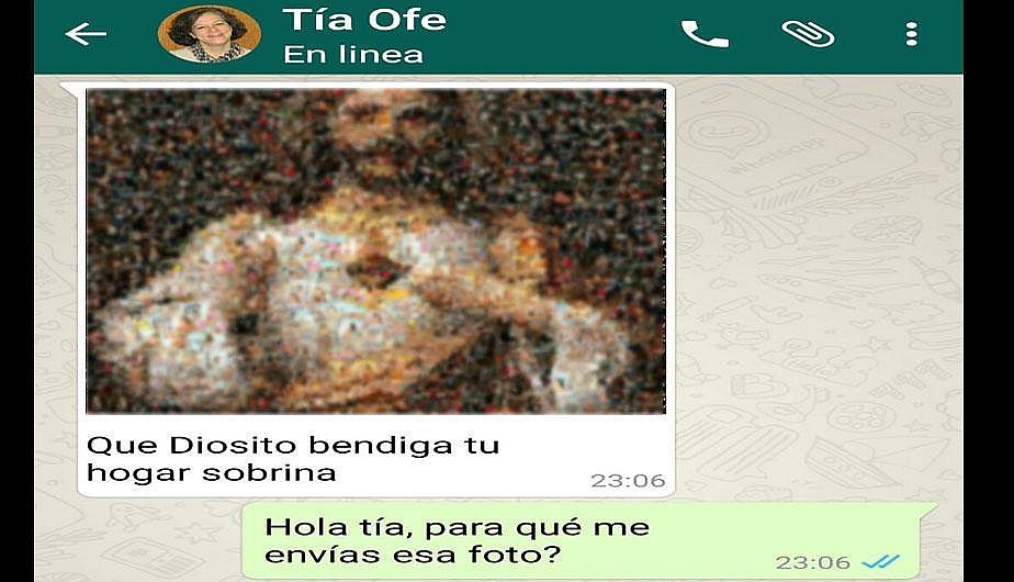 Tía Ofe, una señora muy religiosa, envío a su sobrina una imagen por WhatsApp en la que se ve el Sagrado Corazón de Jesús.