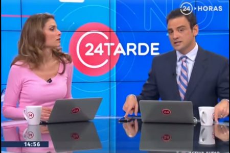 En el vídeo se puede ver al conductor de noticias de TVN, anunciando que van a una pausa comercial y regresan, pero después comenzó a resumir las noticias del próximo bloque, siendo cortado repentinamente.