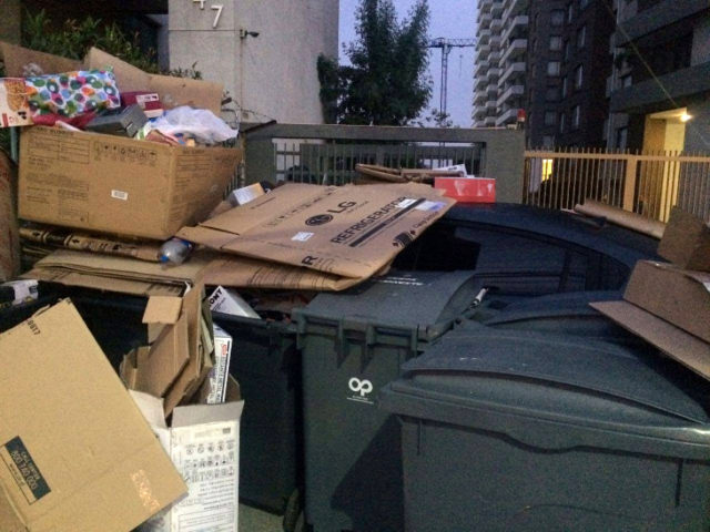 Los vecinos de un condominio en La Florida cubrieron con cartones y basura un vehículo mal estacionado, según informó Radío Bío Bío.