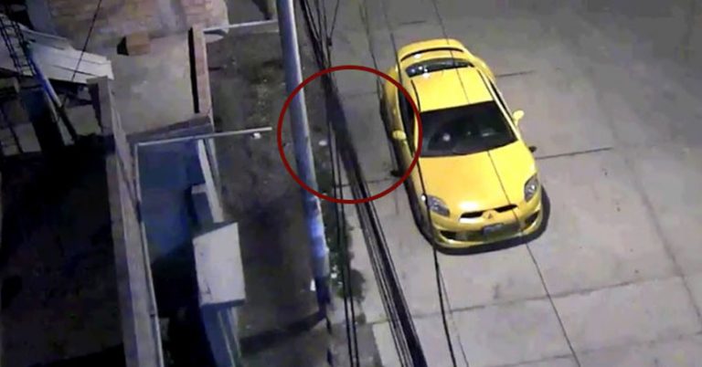 Mientras se esperaba la llegada de las autoridades al lugar, una sombra apareció de la nada. Luego de ver el video nuevamente, en las imágenes se nota una mancha en la parte izquierda en el tejado de una vivienda, hasta que un momento a otro se desplaza a la capota del vehículo para mantenerse por unos minutos hasta deslizarse por la calle colindante.