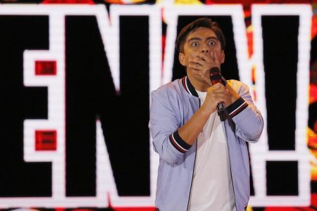 Uno de los momentos de su rutina que más llamó la atención fue cuando el humorista «subió al columpio» a Gente de Zona, quienes se encontraban como jurados de la competencia folclórica e internacional.