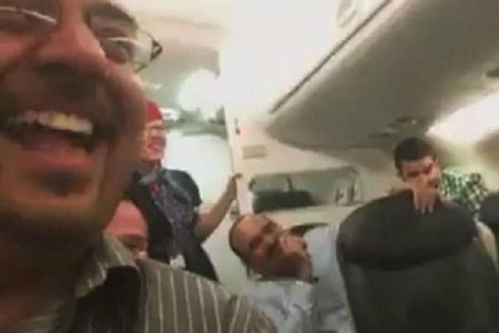 «Aquí está la aeromoza, nos van a dar un vale», dijo, mientras cada palabra suya hacía que las risas se multiplicaran, cuenta RT.