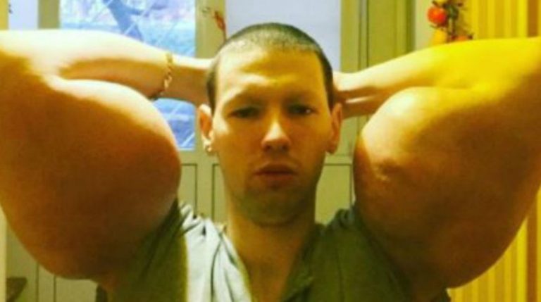 Kiril se inyectó un nocivo cóctel de aceite de oliva, alcohol bencílico y lidocaína, lo que aumentó el diámetro de sus bíceps a 58 centímetros.