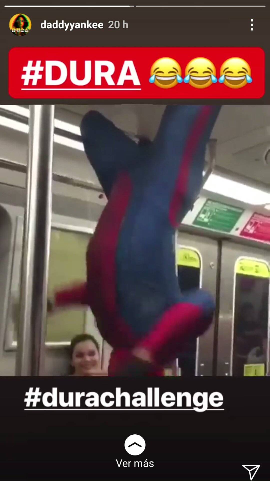 Por eso, su última rutina de baile llegó hasta los ojos de nada más ni nada menos que de Daddy Yankee, quien compartió las imágenes del personaje en las historias de su cuenta de Instagram, para mostrar cómo bailaba dentro del metro su más reciente éxito «Dura».