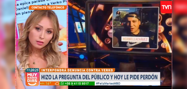 A raíz de eso, el involucrado aprovechó la pantalla que le dio el matinal de TVN «Muy Buenos Días» para disculparse con la chiquilla y asegurar que no fue su intención humillarla, ya que la pregunta estaba pauteada. “Primero que todo, pedirle disculpas a Daniella por haberme prestado para eso. Yo en el momento que lo hice lo vi como una humorada. Pregunté si iba a salir en televisión y me dijeron que sí”, dijo el cabrito.