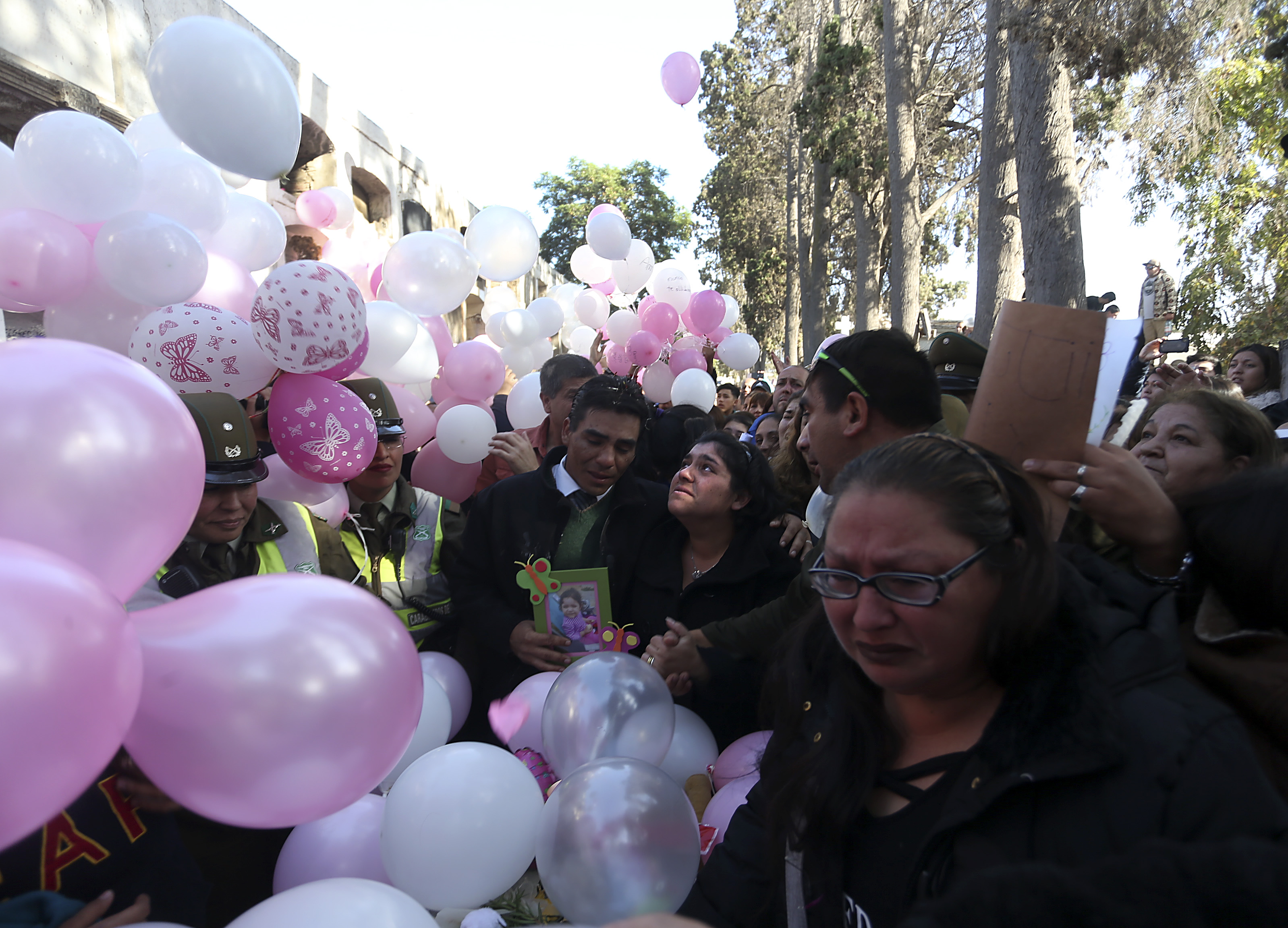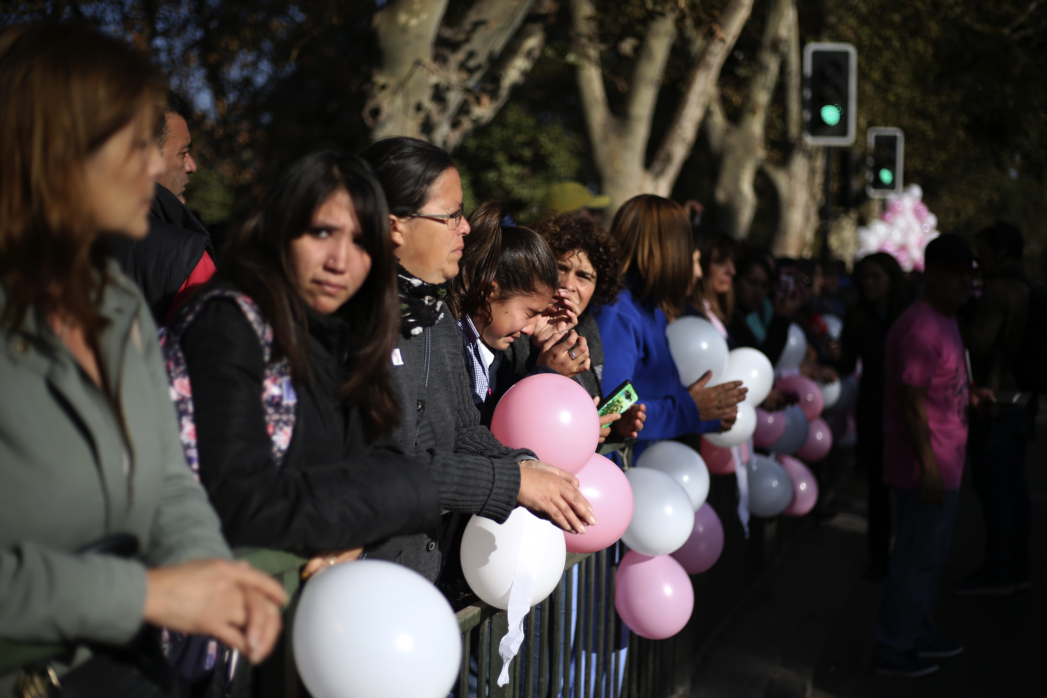 Indignados y conmovidos por la situación, más de dos mil vecinos de Los Andes llegaron hasta la Parroquia de la Asunción para darle el adiós con globos blancos y rosados, peluches, lágrimas y mensajes como “Tu partida fue injusta, cortaron tus alas” y “Un país entero llora tu partida”.