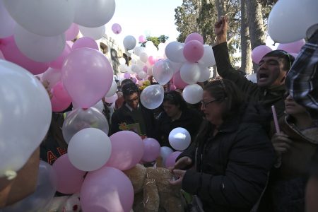 Indignados y conmovidos por la situación, más de dos mil vecinos de Los Andes llegaron hasta la Parroquia de la Asunción para darle el adiós con globos blancos y rosados, peluches, lágrimas y mensajes como “Tu partida fue injusta, cortaron tus alas” y “Un país entero llora tu partida”.