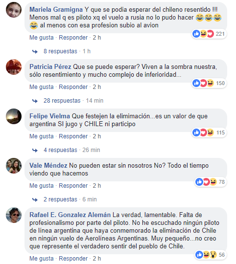 Cabe mencionar, que aunque desde LATAM aseguraron que sus palabras “no representa la opinión de la compañía», un sinfín de hinchas chilenos han apoyado al piloto, señalando que durante meses aguantaron los palabrones y las risas por parte de los che a La Roja por quedar fuera del mundial.