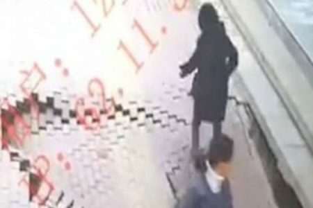 Una grave accidente sufrió una mujer en un paso peatonal en la ciudad de Lanzhou, China, cuando la vereda colapsó y la hizo caer tres metros, mientras caminaba por la cera que más tarde prácticamente se la «tragó».