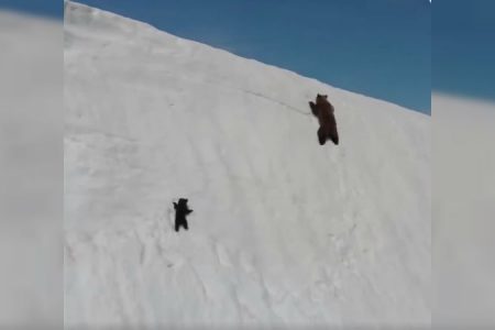 En el video se puede apreciara una mamá oso junto a su pequeña cría subiendo una empinada montaña cubierta de nieve. Mientras la madre sube sin mayor dificultad, el pequeño oso hace todos sus esfuerzos para intentar llegar a la cima. Sin embargo, en varias ocasiones se resbala y cae varios metros hacia abajo.