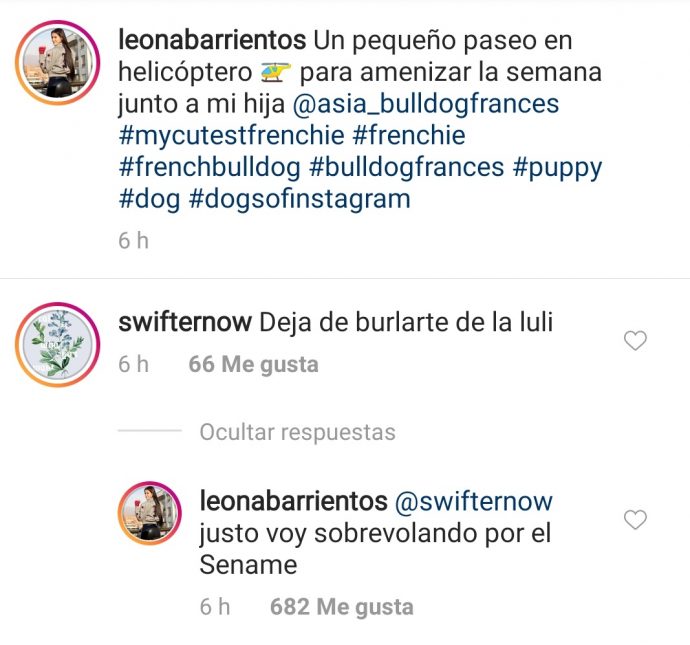 Y es que luego de que subiera un video de un viaje en helicóptero y un seguidor le escribiera que deje de molestar a la animadora de Espacio Chic, ella respondió: «Justo voy sobrevolando sobre el Sename».
