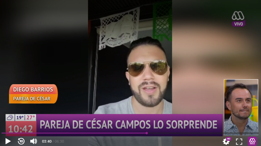Diego Barrios, lo quiso sorprender en un video que consiguió el matinal Mucho Gusto, para expresarle su amor y decirle que lo apoyará en todo momento: “Ya son casi 6 años que estamos juntos. Sólo quiero decir lo mucho que te amo, lo feliz que estoy contigo, lo hermoso que es despertar a tu lado para construir los sueños que nos mueven. Eres una persona increíble, maravillosa, muy detallista, preocupado de hacer siempre algo nuevo. Qué más puedo decir, que te amo”, dijo.