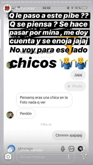 Hace algunos días Jose Luis Joche Bibbó subió una historia a su cuenta de Instagram cuando recibió la respuesta de un seguidor que aparecía en su foto de perfil posando en colaless, imagen que llamó la atención del che, quien le pidió una foto de vuelta sin imaginar que quien estaba detrás de la pantalla era un chiquillo.