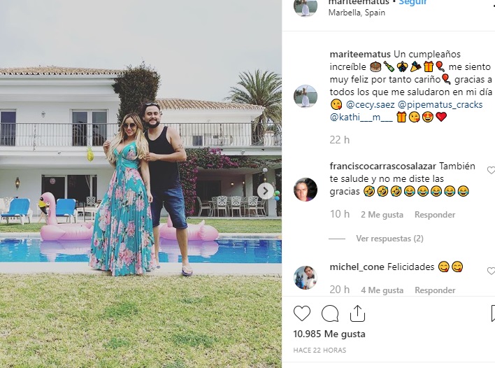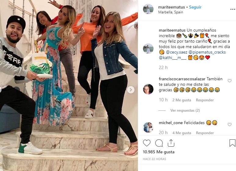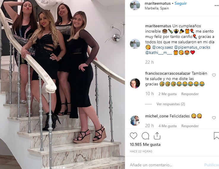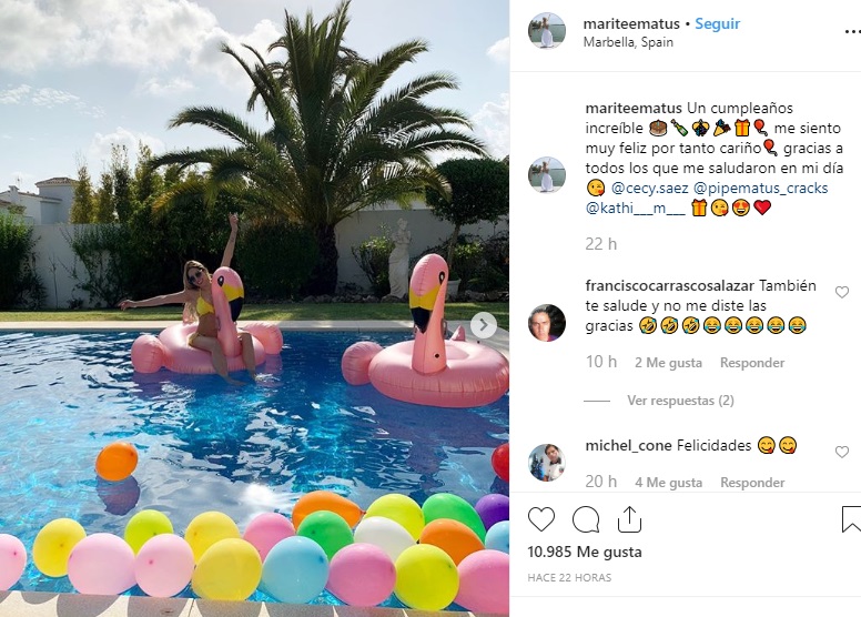 Luego, siguió con la fiesta, que tomó lugar en la piscina, donde la pasó junto a sus mejores amigas como Cecilia Sáez, e incluso su hermano Felipe Matus, quien viajó desde Chile hasta España solo para acompañarla en la especial fecha.