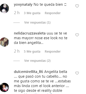 Obviamente los seguidores de Ángela Duarte comentaron la fotografía. Y aunque a varios le gustó su nueva imagen e incluso la compararon con Pamela Anderson, a otros no les gustó para nada, diciendo que la hacía ver mayor, además de decirle que así parecía actriz porno.