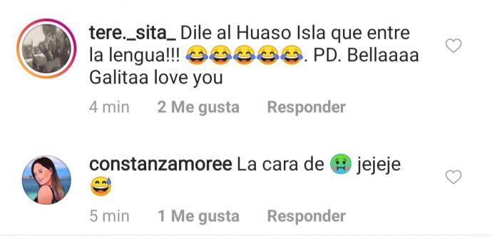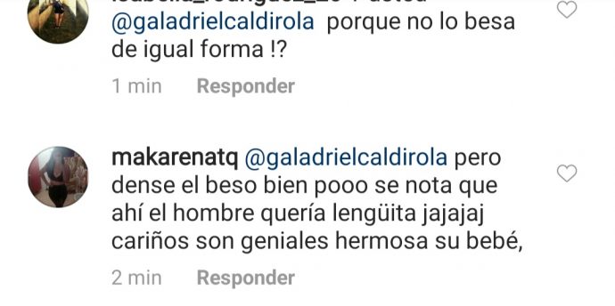 Pese a la romántica postal, varios fueron los comentarios que le llegaron a Gala Caldirola, criticándola por la imagen. Pese a que de todas formas varios felicitaron a la feliz pareja, otros aseguraron que el beso se veía un poco falso, mientras que otros se fijaron en el Huaso isla, a quien le recomendaron que para fotografías así no debería sacar la lengua.
