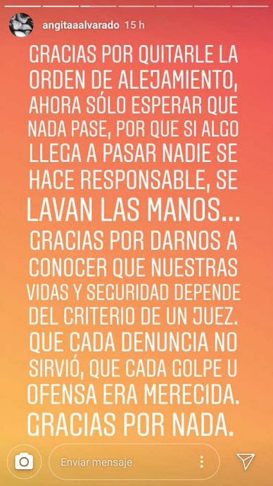 Finalmente este jueves se dictaminó sentencia para la ex pareja de Anita Alvarado, lo que dejó a su familia bastante preocupada. Pues el canadiense fue absuelto de todos los cargos, de esta forma levantando la orden de alejamiento. Es por esto que Angie Alvarado ocupó su cuenta de Instagram para descargarse con la justicia.