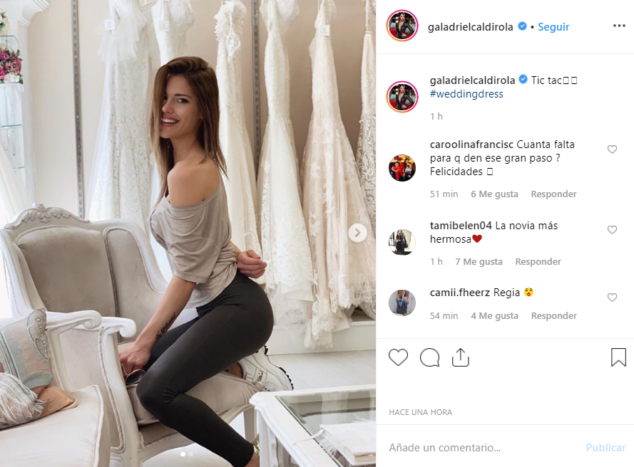 Pero también Gala Caldirola aprovechó de capturar el momento en sus redes sociales, donde publicó algunas fotografías acompañadas del mensaje «Tic tac #weddingdress». Dejando a todos sus seguidores muy expectantes por el matri.