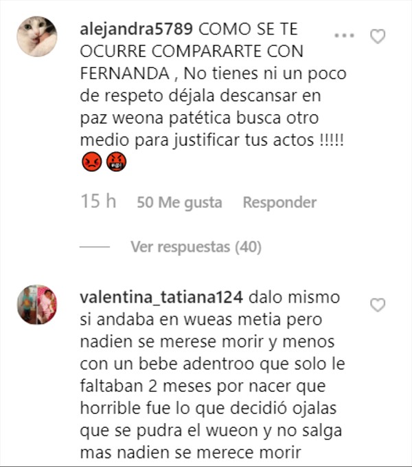 Pese a esto, la polémica chiquilla se llenó de críticas por parte de sus seguidores, quienes la mandaron a «informarse antes de opinar» y que «deje de hablar cosas sin sentido». Junto con esto, algunos señalaron que esta aprovechando de compararse con Fernanda Maciel para «justificar sus actos».