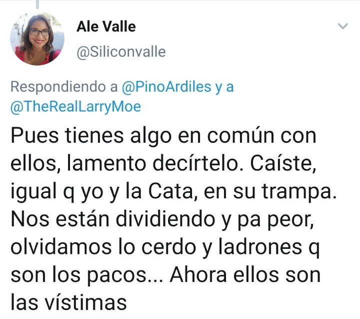 «Lamento de todo corazón el infortunado Twitter de la Sra. Valle, en donde se me involucro, sin mi autorización, y que de ninguna forma reflejan mi pensamiento a la respetable institución de Carabineros de Chile».