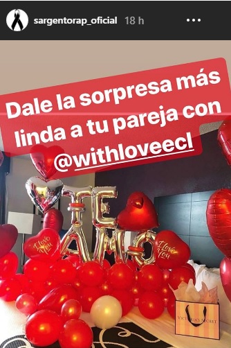 Pero la separación duro pocos días, ya que Ignacia y el mexicano están juntos nuevamente y para esta especial fecha, Sargento le preparó una romántica sorpresa a su amor. Pues a través de una historia de Instagram, el chico reality mostró que llenó una habitación con globos rojos y en forma de corazón, además de un gran adorno que lee «Te amo».