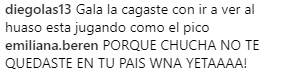 Esto porque algunos de los seguidores de Gala Caldirola la tildaron de «yeta» tras visitar al Huaso en el país Carioca, lamentándose de la derrota de Chile frente a Perú. Varios de los usuarios de redes sociales le dejaron pesados mensajes, acusándola de desconcentrar a su esposo previo al importante partido de La Roja.