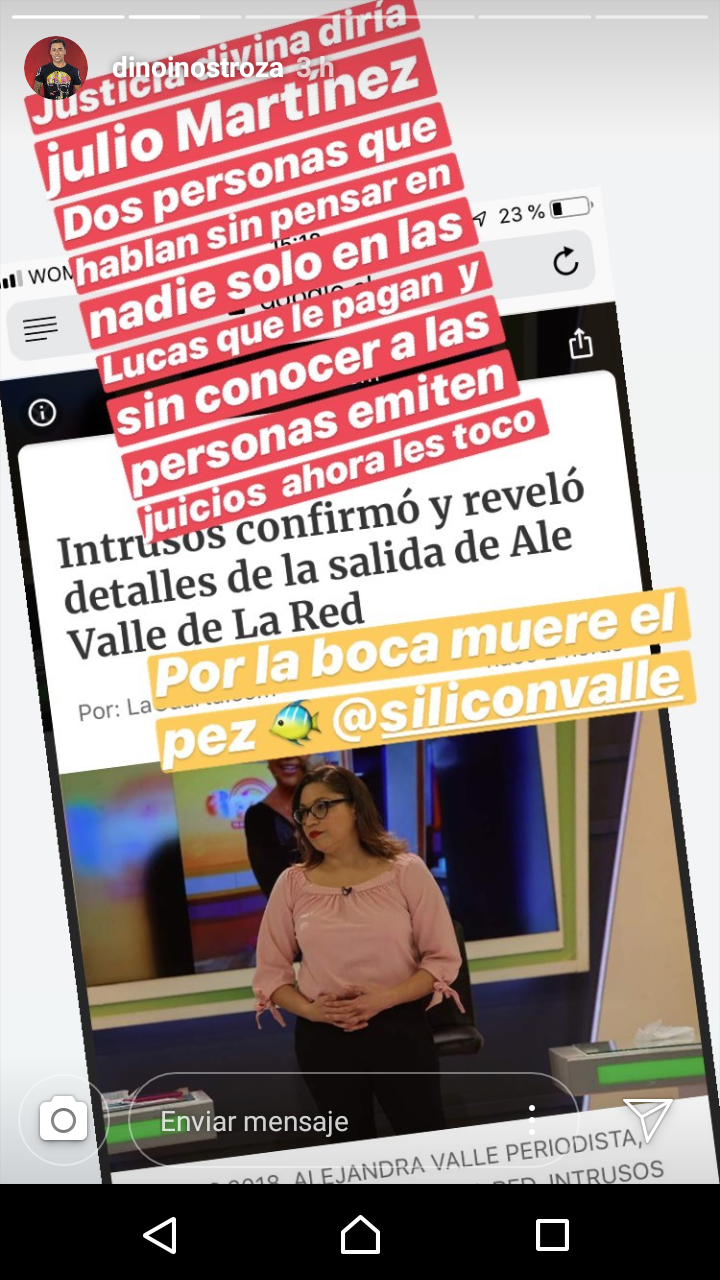 A través de sus historias de Instagram, Dino Inostroza celebró la salida de Alejandra Valle y Catalina Pulido de La Red, tras las polémicas en las que se vieron envueltas durante las últimas semanas.
