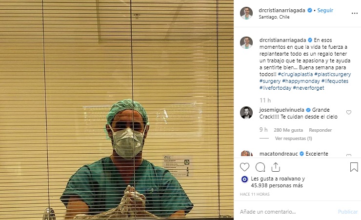 «En esos momentos en que la vida te fuerza a replantearte todo, es un regalo tener un trabajo que te apasiona y te ayuda a sentirte bien… Buena semana para todos!!» escribió el esposo de Javiera Suárez acompañando la foto que publicó.