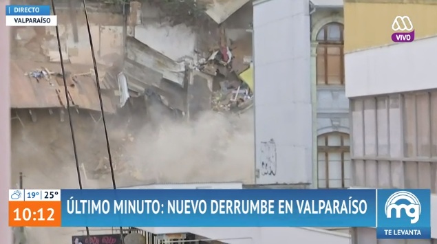 Junto con esto, aseguró que el derrumbe fue menor frente al ocurrido ayer, además afortunadamente la vivienda estaba deshabitada. «Fue con un ruido muy potente y esta nube de polvo» describió.