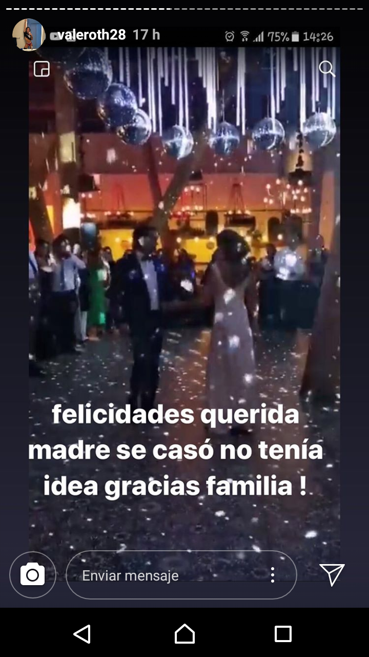Además en una historia de Instagram, publicó una foto del matrimonio y la acompañó del siguiente mensaje: «Felicidades querida madre. Se casó, no tenía idea. Gracias familia».