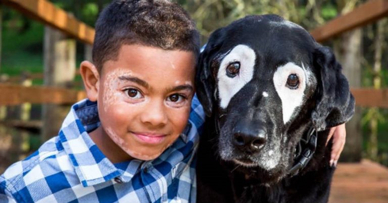 Entonces la mujer comenzó a buscar en internet alguna manera de ayudar a su hijo. De pronto se topó con lo que creyó que podía ser una gran ayuda: una foto de Rowdy, un perro labrador negro, de 13 años, popular en las redes sociales y que, como su hijo, había sido diagnosticado con vitiligo.