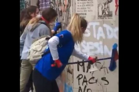 En el video se ve cómo la joven barre enérgicamente la pared, siendo blanco de memes, críticas y amenazas, donde muchos la trataron de «tonta», «rubia» y «cuica», entre otras cosas.