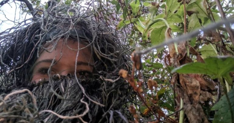 El problema es que no tenía que estar presente para arruinar el momento. Entonces, tuvo la brillante idea de utilizar un traje de camuflaje para mezclarse perfectamente entre los arbustos del parque Picnic Point en Madison.